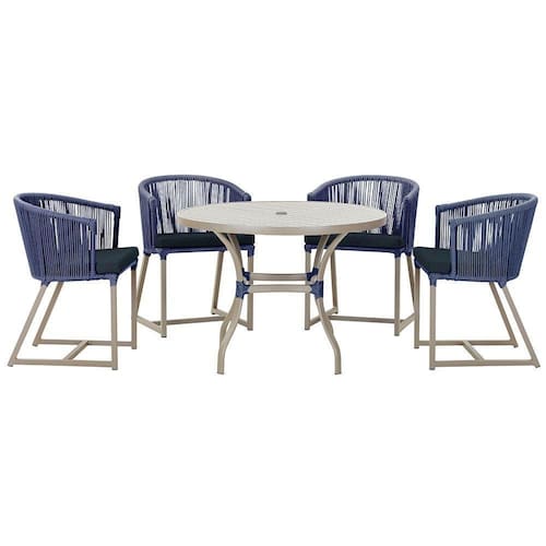 Produto conhecido como: mesa e cadeiras, Jogo de jantar, Estofado impermeavel, Moveis de exterior, Cadeira resistente a agua, Cadeira estofada, Cadeira para area externa, Cadeira de jardim, Moveis para varanda, Cadeira duravel, Cadeira de alta qualidade, Conforto em Cadeira, Cadeira elegante