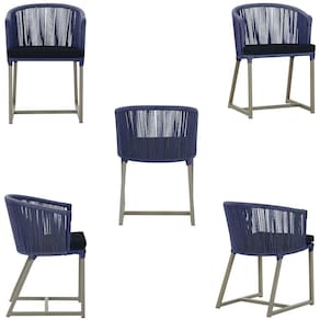 Descubra a Elegancia e Durabilidade da Mesa de Jantar Roma e Cadeiras Noronha. Combinando estilo e resistencia, esta Mesa e cadeiras traz o melhor do design contemporaneo em aluminio com micro pintura e acabamento em corda nautica. O estofado impermeavel completa o conforto e a funcionalidade, tornando-a ideal para ambientes externos e internos.