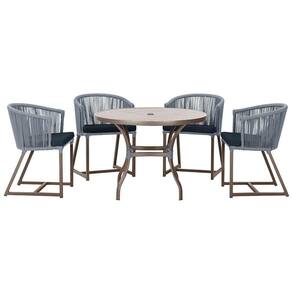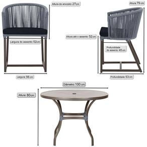 Descubra a Elegancia e Durabilidade da Mesa de Jantar Roma e Cadeiras Noronha. Combinando estilo e resistencia, esta Mesa e cadeiras traz o melhor do design contemporaneo em aluminio com micro pintura e acabamento em corda nautica. O estofado impermeavel completa o conforto e a funcionalidade, tornando-a ideal para ambientes externos e internos.