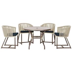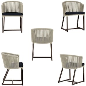 Descubra a Elegancia e Durabilidade da Mesa de Jantar Roma e Cadeiras Noronha. Combinando estilo e resistencia, esta Mesa e cadeiras traz o melhor do design contemporaneo em aluminio com micro pintura e acabamento em corda nautica. O estofado impermeavel completa o conforto e a funcionalidade, tornando-a ideal para ambientes externos e internos.