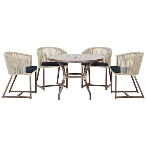 Produto conhecido como: mesa e cadeiras, Jogo de jantar, Estofado impermeavel, Moveis de exterior, Cadeira resistente a agua, Cadeira estofada, Cadeira para area externa, Cadeira de jardim, Moveis para varanda, Cadeira duravel, Cadeira de alta qualidade, Conforto em Cadeira, Cadeira elegante