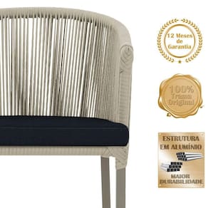 Descubra a Elegancia e Durabilidade da Mesa de Jantar Roma e Cadeiras Noronha. Combinando estilo e resistencia, esta Mesa e cadeiras traz o melhor do design contemporaneo em aluminio com micro pintura e acabamento em corda nautica. O estofado impermeavel completa o conforto e a funcionalidade, tornando-a ideal para ambientes externos e internos.