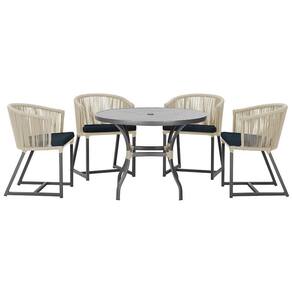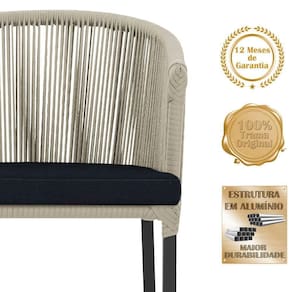 Descubra a Elegancia e Durabilidade da Mesa de Jantar Roma e Cadeiras Noronha. Combinando estilo e resistencia, esta Mesa e cadeiras traz o melhor do design contemporaneo em aluminio com micro pintura e acabamento em corda nautica. O estofado impermeavel completa o conforto e a funcionalidade, tornando-a ideal para ambientes externos e internos.