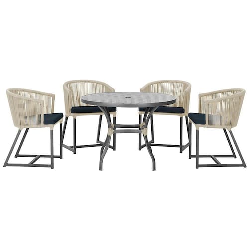 Produto conhecido como: mesa e cadeiras, Jogo de jantar, Estofado impermeavel, Moveis de exterior, Cadeira resistente a agua, Cadeira estofada, Cadeira para area externa, Cadeira de jardim, Moveis para varanda, Cadeira duravel, Cadeira de alta qualidade, Conforto em Cadeira, Cadeira elegante