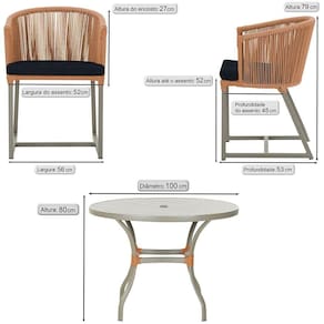 Descubra a Elegancia e Durabilidade da Mesa de Jantar Roma e Cadeiras Noronha. Combinando estilo e resistencia, esta Mesa e cadeiras traz o melhor do design contemporaneo em aluminio com micro pintura e acabamento em corda nautica. O estofado impermeavel completa o conforto e a funcionalidade, tornando-a ideal para ambientes externos e internos.