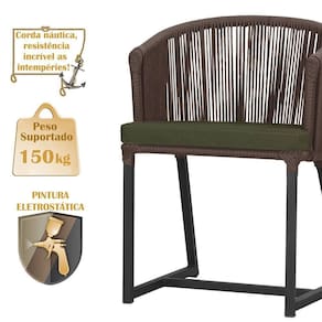 Descubra a Elegancia e Durabilidade da Mesa de Jantar Roma e Cadeiras Noronha. Combinando estilo e resistencia, esta Mesa e cadeiras traz o melhor do design contemporaneo em aluminio com micro pintura e acabamento em corda nautica. O estofado impermeavel completa o conforto e a funcionalidade, tornando-a ideal para ambientes externos e internos.