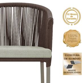 Descubra a Elegancia e Durabilidade da Mesa de Jantar Roma e Cadeiras Noronha. Combinando estilo e resistencia, esta Mesa e cadeiras traz o melhor do design contemporaneo em aluminio com micro pintura e acabamento em corda nautica. O estofado impermeavel completa o conforto e a funcionalidade, tornando-a ideal para ambientes externos e internos.