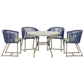 Mesa Com 4 Cadeiras E Noronha Estofado 5 Trama autêntico Azul