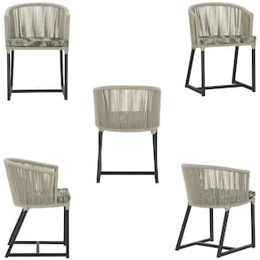 Descubra a Elegancia e Durabilidade da Mesa de Jantar Roma e Cadeiras Noronha. Combinando estilo e resistencia, esta Mesa e cadeiras traz o melhor do design contemporaneo em aluminio com micro pintura e acabamento em corda nautica. O estofado impermeavel completa o conforto e a funcionalidade, tornando-a ideal para ambientes externos e internos.