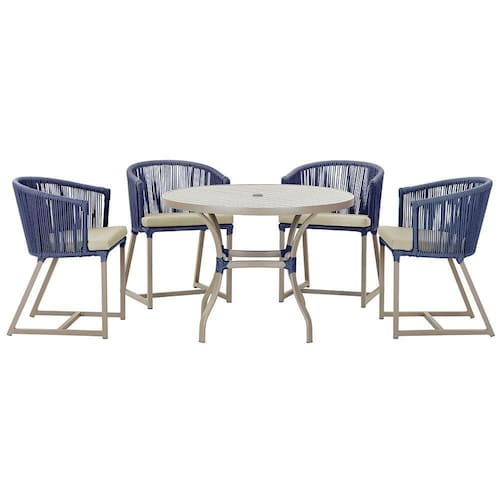 Produto conhecido como: mesa e cadeiras, Jogo de jantar, Estofado impermeavel, Moveis de exterior, Cadeira resistente a agua, Cadeira estofada, Cadeira para area externa, Cadeira de jardim, Moveis para varanda, Cadeira duravel, Cadeira de alta qualidade, Conforto em Cadeira, Cadeira elegante