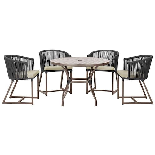 Produto conhecido como: mesa e cadeiras, Jogo de jantar, Estofado impermeavel, Moveis de exterior, Cadeira resistente a agua, Cadeira estofada, Cadeira para area externa, Cadeira de jardim, Moveis para varanda, Cadeira duravel, Cadeira de alta qualidade, Conforto em Cadeira, Cadeira elegante