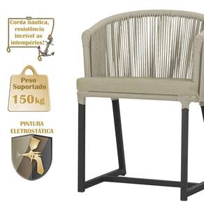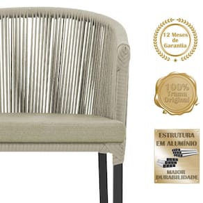 Descubra a Elegancia e Durabilidade da Mesa de Jantar Roma e Cadeiras Noronha. Combinando estilo e resistencia, esta Mesa e cadeiras traz o melhor do design contemporaneo em aluminio com micro pintura e acabamento em corda nautica. O estofado impermeavel completa o conforto e a funcionalidade, tornando-a ideal para ambientes externos e internos.