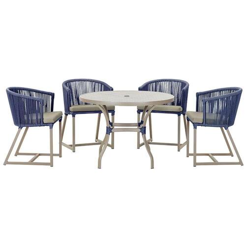 Descubra a Elegancia e Durabilidade da Mesa de Jantar Roma e Cadeiras Noronha. Combinando estilo e resistencia, esta Mesa e cadeiras traz o melhor do design contemporaneo em aluminio com micro pintura e acabamento em corda nautica. O estofado impermeavel completa o conforto e a funcionalidade, tornando-a ideal para ambientes externos e internos.