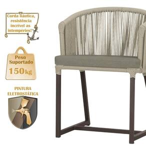 Descubra a Elegancia e Durabilidade da Mesa de Jantar Roma e Cadeiras Noronha. Combinando estilo e resistencia, esta Mesa e cadeiras traz o melhor do design contemporaneo em aluminio com micro pintura e acabamento em corda nautica. O estofado impermeavel completa o conforto e a funcionalidade, tornando-a ideal para ambientes externos e internos.
