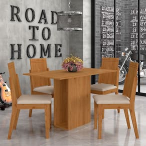 O Conjunto Sala de Jantar Filipinas é ideal para você que procura espaço com conforto e design moderno.Detalhes Técnicos da Mesa:- Acabamento da Mesa: Pintura Texturizada- Tipo de Pintura: UV Texturizada - P.U- Borda da Mesa: P.U- Quantidade de Lugares: 04- Material da Base da Mesa: MDP- Material do Tampo: MDP- Tipo de Tampo: Retangular MDP Pintura Texturizada-Tonalidade da Mesa: Cinamomo- Espessura do Tampo:15 mm- Medida da Base: 78CM x 70CM x 35CM- Medida do Tampo: 104CM x 68CM x 15CM- Medida da Mesa Montada: (A x C x P) 80CM x 104CM x 68CM- Possui Suporte Giratório: Não- Formato: Retangular- Garantia do Fornecedor: 3 MesesDetalhes Técnicos das Cadeiras:- Acabamento da Cadeira: Pintura com Assento Estofado- Almofada do Assento: Fixa- Cadeira Estofada: Sim (Assento)- Peso Suportado da Cadeira: 90 KG- Facilidade da Montagem: Média -Deve ser montada por um Profissional- Tonalidade: Cinamomo (Estrutura)/ Suede Bege (Assento e Encosto)- Espuma do Assento: D 23- Tipo de Pintura: UV Texturizada- Material da Estrutura: 100% MDF 25 e 18 mm- Revestimento da Cadeira: Suede- Medida da Cadeira/ Banco: 95CM x 40CM x 45CMConteúdo da Embalagem:- 01 Sala de Jantar- Manual de Montagem- Acessório para MontagemObservações Importantes:- Evitar a exposição direta à luz solar e à umidade;- Para limpeza, limpar com pano macio e seco, não utilizar qualquer outro tipo de produtos químicos;- As imagens ambientadas são meramente ilustrativas e podem apresentar itens que não incorporam o produto;- Objetos decorativos que aparecem na foto não acompanham o produto;- As cores do produto podem variar de acordo com o monitor, a iluminação do ambiente ou sua percepção visual;PERGUNTAS FREQUENTES1 - O produto é novo ou usado?R.: Todos os nossos produtos são novos e acompanham NOTA FISCAL.2 – O produto vem montado? Vocês realizam a montagem?R.: - Os móveis são entregues desmontados e com manual de montagem. MONTAGENS, DESMONTAGENS e INSTALAÇÕES devem ser contratado um montador profissional pelo CLIENTE.3 – Os produtos possuem garantia?R.: Sim, todos os nossos produtos possuem garantia de 3 meses, essa garantia cobre somente defeitos de fabricação. Esta garantia não cobre defeitos por uso inadequado ou abusivo, falta de cuidados e desbotamento natural dos revestimentos.4 – Como é realizada a entrega?R.: Enviamos para diversos estados, sendo assim nossas entregas são realizadas por transportadoras parceiras de nossa empresa. Confira as dimensões antes da compra e certifique-se de que o produto passará por elevadores, portas e corredores já que nossa entrega não inclui a subida de lances de escada, transporte por elevador e o lançamento de produtos, em caso de condomínios residenciais a entrega é feita somente até a portaria. Todas as entregas são realizadas em dias e horários comerciais.5 – O que devo verificar no ato da entrega do produto?R.: Observe se a embalagem se encontra em perfeitas condições. Se você adquiriu algum móvel, confira atentamente a quantidade de volumes e o aspecto físico das embalagens. Confira também se a cor do móvel está de acordo com o seu pedido.6 – Vocês entregam para todo o país?R.: Para verificar se enviamos à sua região, basta ir ao campo de cálculo de entrega e colocar seu CEP assim é possível visualizar se entregamos, o valor e o prazo para o transporte até a sua cidade!7 – Quando houver necessidade de desmontagens para efetuar a troca ou devolução, os custos de tais serviços serão ressarcidos?R.: Não, os custos de DESMONTAGENS sempre serão por conta do CLIENTE!.