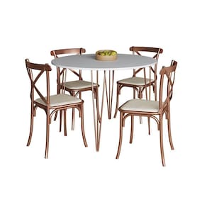 Mesa Com 4 Cadeiras Katrina Cobre Elen Hairpin 110cm Jantar Branca Base CobreA sua cozinha ou sala de jantar só está completa com uma boa combinação de mesa e cadeira para reunir a família e amigos, se você busca um móvel de qualidade e com combinação de cores, o modelo Elen e Katrina é para você! Com tampo redondo e estrutura em ferro, ela acomoda os seus convidados enquanto complementa a decoração com sofisticação e qualidade.Tipo: ConjuntoModelo: Elen e KatrinaCor Tampo: BrancoBase: CobreMedidas MesaAltura: 76cmDiâmetro: 110cmMedidas Cadeira:Altura: 90cmLargura: 48cmComprimento: 46cmATENÇÃOIMAGENS MERAMENTE ILUSTRATIVAS, PODENDO HAVER UMA PEQUENA VARIAÇÃO DE COR DEPENDENDO DE CADA TELA OU MONITOR. Mesa com 4 Cadeiras Katrina Cobre Elen Hairpin 110cm Jantar Branca Base Cobre