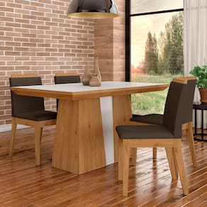 A Mesa com 4 Cadeiras Chiara é um modelo marcante que brilha por si só. Deixe sua sala de jantar encantadora com esse conjunto!