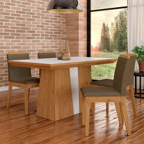 A Mesa com 4 Cadeiras Chiara é um modelo marcante que brilha por si só. Deixe sua sala de jantar encantadora com esse conjunto!