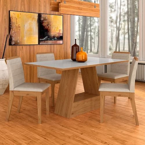 A Mesa com 4 cadeiras Nápoles além de moderna, é a escolha certeira para quem trazer sofisticação e beleza para a sua sala de jantar!