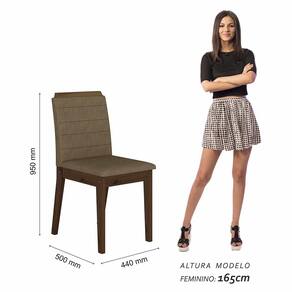 Detalhes Técnicos das Cadeiras -Almofada do Assento: Fixa -Cadeira Estofada: Sim -Estrutura: MDF 18 e 25mm -Peso Suportado da Cadeira: 90KG -Facilidade da Montagem: Difícil -Tonalidade Cadeira: Imbuia -Tonalidade do Tecido: Suede Capuccino -Assento: D16 -Encosto: D14 -Medida da Cadeira/Banco: A95CM x P50CM x L44CM