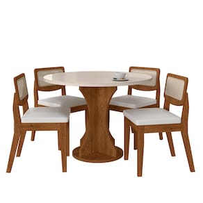 Detalhes Técnicos das Cadeiras -Assento Tapeçados e Estofados -Cadeira suporta até 90KG -Tonalidade Cadeira:Freijó/Corino Branco -Espuma Assento:D23 -Pintura UV Texturizada -Material Estrutura:MDF 25/18mm -Medida Cadeira:A84CM|L45CM|P53CM