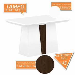 Detalhes Técnicos da Mesa: - Tipo de Pintura: Uv Texturizada - P.U - Borda da Mesa: P.U - Quantidade de Lugares: 04 - Material da Base: Mdp 15mm - Material do Tampo: Mdf - Medida da Mesa Montada: 80CM x 90CM x 136CM - Possui Suporte Giratório: Não - Formato: Retângular - Tonalidade do Tampo: Branco - Tonalidade do Base: Branco/Imbuia
