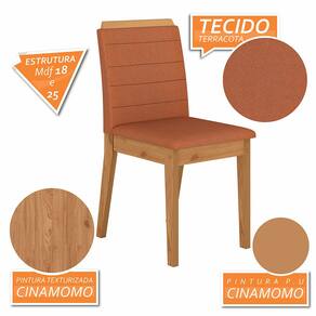 Detalhes Técnicos das Cadeiras - Assento e Encosto Estofados e Fixos - Cadeira suporta até 90kg - Facilidade Montagem: Difícil - Tonalidade Cadeira: Cinamomo/Suede Terracota - Pintura Estrutura: UV Texturizada e P.U - Material Estrutura: MDF de 18 e 25mm - Medida de cada Cadeira: A:95cm | L:44cm | P:50cm!