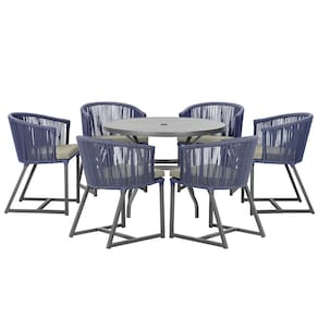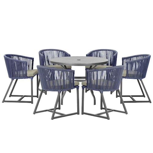 Mesa com 6 Cadeiras de Jantar Roma 120cm e Noronha em Alumínio - Azul