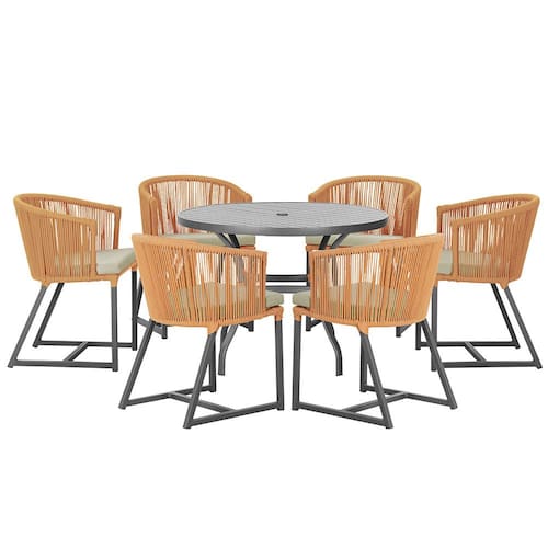 Mesa com 6 Cadeiras de Jantar Roma 120cm e Noronha em Alumínio - Laranja