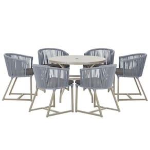 Mesa com 6 Cadeiras de Jantar Roma 120cm e Noronha em Alumínio - Cinza Verde