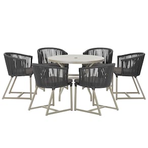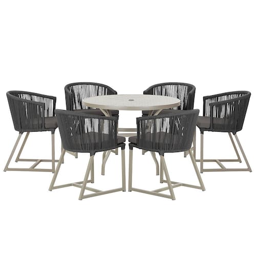 Combinando estilo e resistência, esta Mesa e cadeiras traz o melhor do design contemporâneo em alumínio com micro pintura e acabamento em corda náutica. O Estofado impermeável completa o conforto e a funcionalidade, tornando-a ideal para ambientes externos e internos.