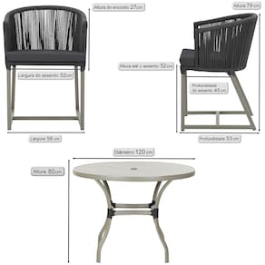 Fotos meramente ilustrativas. Tonalidades podem variar dependendo do monitor. Os objetos que ambientam as Fotos não acompanham o produto. Antes de comprar o seu produto verifique as medidas, o local onde pretende instalar e se necessário contratar o serviço de um profissional qualificado. Produto conhecido como: mesa e cadeiras, Jogo de jantar, Estofado impermeável, Móveis de exterior, Cadeira resistente à água, Cadeira estofada, Cadeira para área externa, Cadeira de jardim, Móveis para varanda, Cadeira durável, Cadeira de alta qualidade, Conforto em Cadeira, Cadeira elegante.