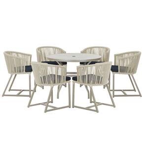 Mesa com 6 Cadeiras de Jantar Roma 120cm e Noronha em Alumínio - Bege Médio