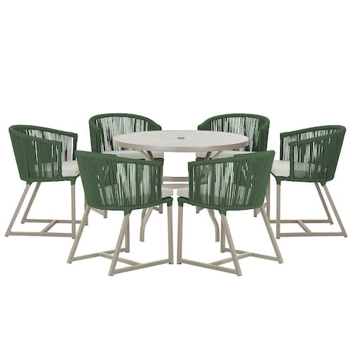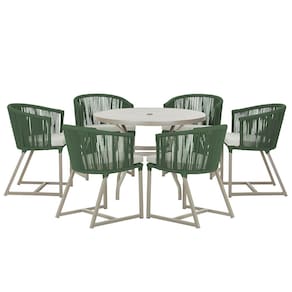 Mesa com 6 Cadeiras de Jantar Roma 120cm e Noronha em Alumínio - Verde Musgo