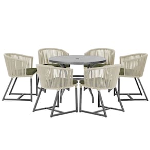 Mesa com 6 Cadeiras de Jantar Roma 120cm e Noronha em Alumínio - Bege Médio