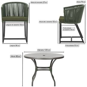 Mesa com 6 Cadeiras de Jantar Roma 120cm e Noronha em Alumínio - Verde Musgo