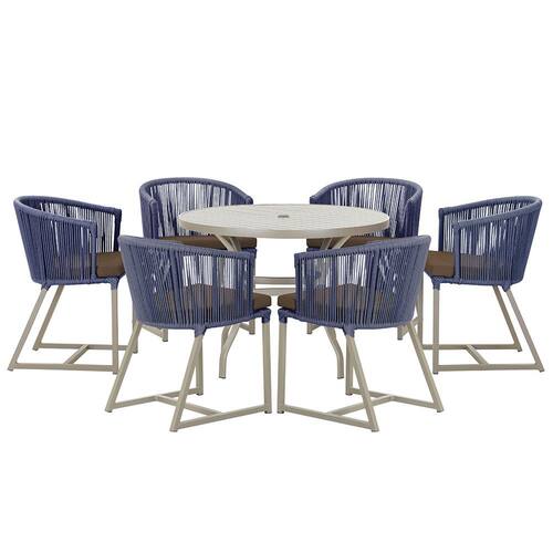 Mesa com 6 Cadeiras de Jantar Roma 120cm e Noronha em Alumínio - Azul