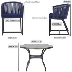 Mesa com 6 Cadeiras de Jantar Roma 120cm e Noronha em Alumínio - Azul