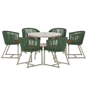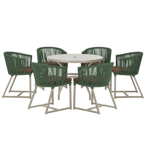Mesa com 6 Cadeiras de Jantar Roma 120cm e Noronha em Alumínio - Verde Musgo