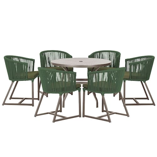 Mesa com 6 Cadeiras de Jantar Roma 120cm e Noronha em Alumínio - Verde Musgo