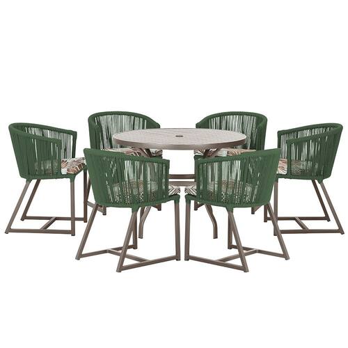 Mesa com 6 Cadeiras de Jantar Roma 120cm e Noronha em Alumínio - Verde Musgo