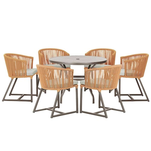 Mesa com 6 Cadeiras de Jantar Roma 120cm e Noronha em Alumínio - Laranja