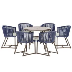 Mesa Com 6 Cadeiras Jantar Noronha Marrom E3 Trama Azul