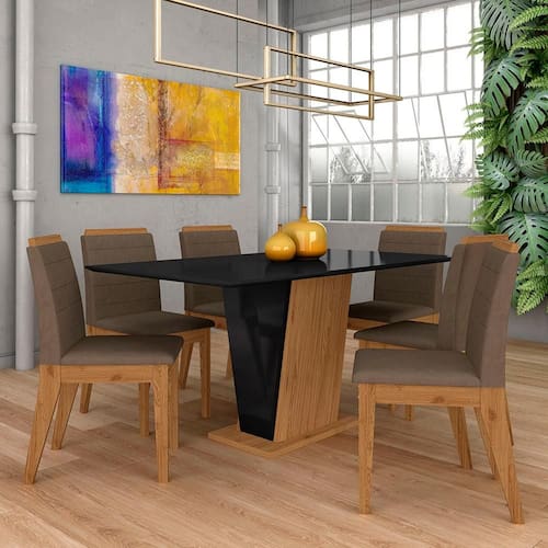 A Mesa com 6 Cadeiras Qatar 160cm é moderno e encantador, capaz de iluminar a sua sala de jantar!