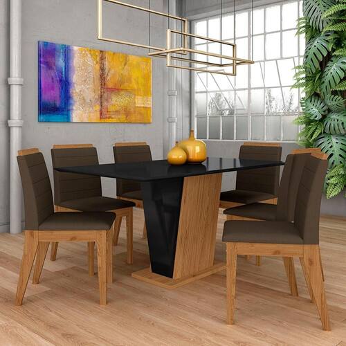 A Mesa com 6 Cadeiras Qatar 160cm é moderno e encantador, capaz de iluminar a sua sala de jantar!