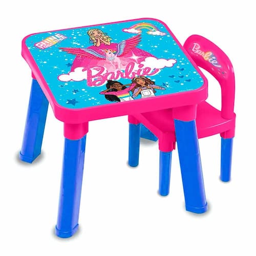 Mesa com Cadeira para Atividades - Barbie - Fun Divirta-se: a mesa para atividades da Barbie oferece um espaço multifuncional. As pequenas podem explorar sua criatividade. Seja para desenhar, estudar ou brincar. Acompanha uma cadeira para a diversão ser completa! Detalhes: • Leve, compacta e resistente • Prática para limpar • Fácil e prático para montar e desmontar • Esta mesa de atividades oferece um espaço multifuncional • As pequenas podem explorar sua criatividade. Seja para desenhar, estudar ou brincar • Acompanha uma cadeira que garante conforto durante as horas de diversão Informações: • Produto: Mesa com Cadeira Barbie • Marca: Fun Divirta-se • Coleção: Barbie • Tipo: Mesa com Cadeira para Atividades • Categoria: Artes e Atividades • Tamanho (C x A x L): - Mesa: 50 x 42 x 50 cm - Cadeira: 45 cm de altura • Conteúdo: - 01 mesa desmontável - 01 cadeira desmontável • Recomendação: para crianças a partir de 03 anos de idade Especificações: • Referência: F0164-0 • Código de Barras: 7908489408405 • Embalagem (C x A x L): 53 x 52 x 15 cm • Embalagem (Peso): 2.508 kg • Material / Composição: Plástico • Registro: 004037/2021 • Certificado: Órgãos Autorizados - OCP´S (Organismos de Certificação de Produtos) Aviso: • As imagens são meramente ilustrativas • Os tamanhos e medidas são aproximados • As cores e estampas dos produtos podem ter variações • As informações são de responsabilidade do fabricante ou fornecedor