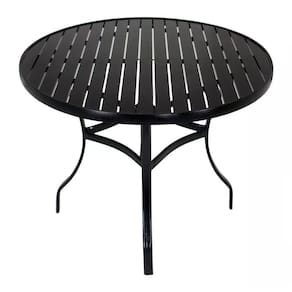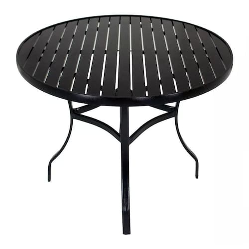 Mesa Com Tampo Ripado Alumínio Para Cozinha Preto CARACTERISTICAS: - Pecas produzidas em aluminio polido e revestidas em fibra sintetica com protecao UV. - - As cores dos produtos podem variar de acordo com o ambiente e com a iluminacao em que as fotos foram tiradas. - Ideal para ambientes como: varandas, ediculas, area de lazer, salas de estar, sala de jogos, churrasqueiras, sala de filme, recepcao, sala de espera entre outros. ITENS INCLS: 1 Mesa Roma com Tampo Ripado em Aluminio com furo central + tampa