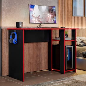 Mesa Gamer 108 Cm Slim Com Suporte - Ssx Multicoisas Cor Preto/vermelho Transforme seu espaço com a Mesa Gamer Slim! Nossa mesa gamer é a solução perfeita para manter seu ambiente organizado e estiloso. Com um design compacto e funcional, ela oferece praticidade e elegância em um único produto. Melhore sua experiência de jogo e trabalho com a Mesa Gamer Slim! Dimensões: Comprimento: 108 cm Altura: 74,3 cm Profundidade: 52 cm