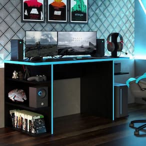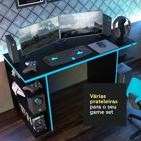 Perfeita para jogar no computador ou no videogame, seu tampo reforçado tem lugar para todos os objetos.