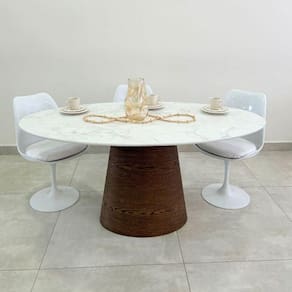 Mesa Cone Oval 180x100 cm Tampo Laca Branca Base Imbuia Horizontal